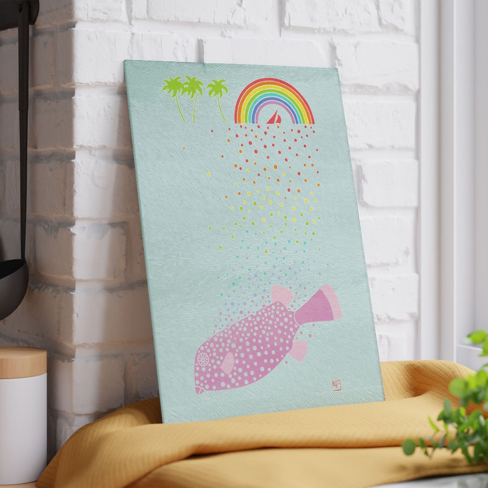 Over the Rainbow Waves by Ikki Matsumoto Glass Cutting Board